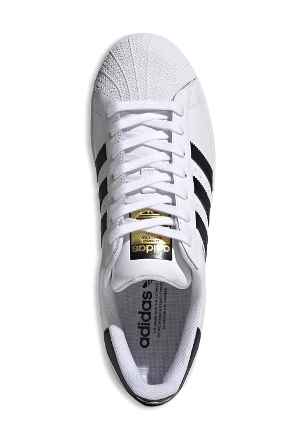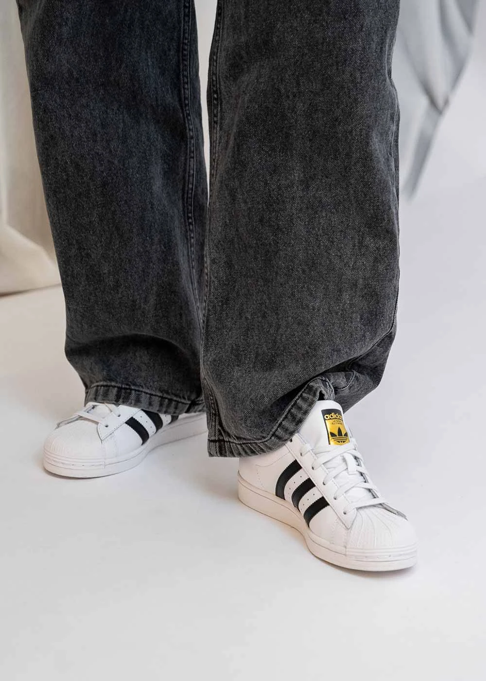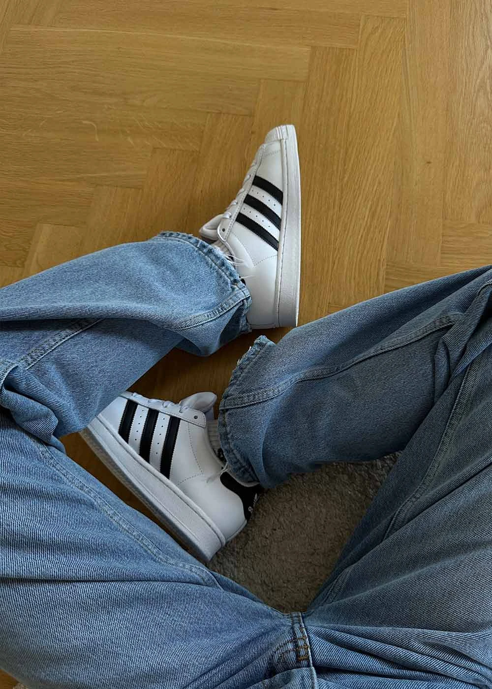 Superstar er en klassisk sko fra Adidas, der oprindeligt blev lavet til basketballspillere. Skoen er lavet i læder og med de takkede tre striber, den ikoniske skaltå og logo er det en ægte Adidas klassiker.