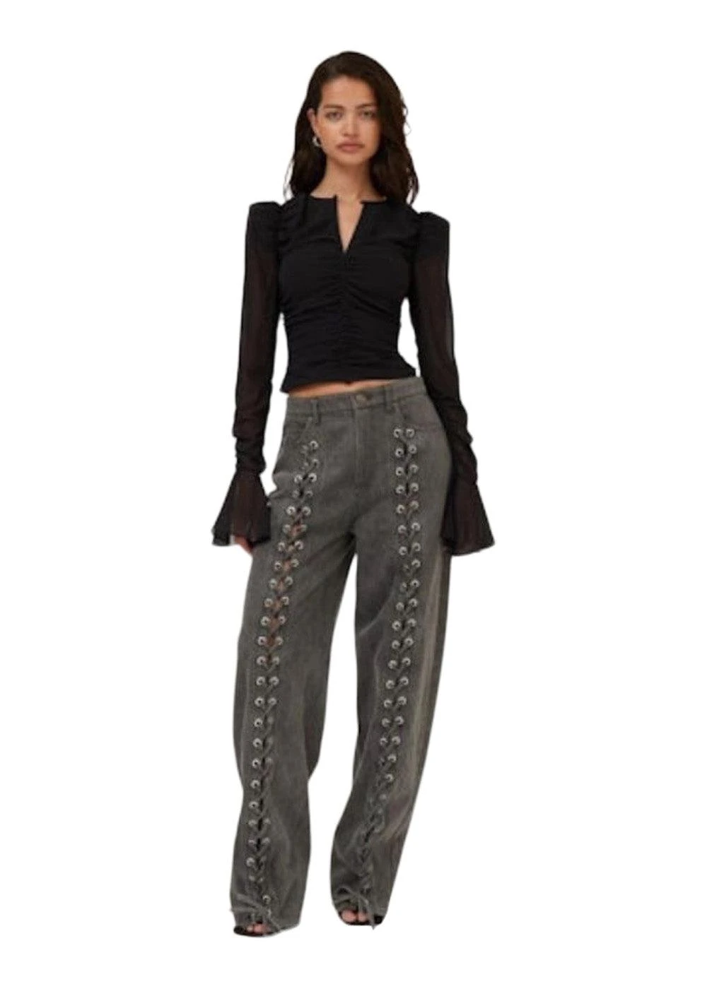 Denim Laced Leg Pants – Black