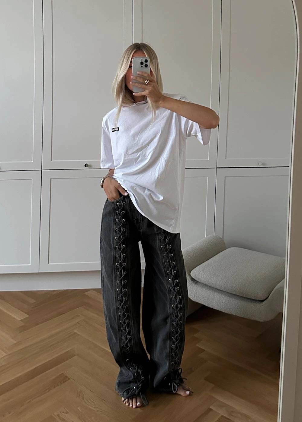 - Cool jeans med snøredetaljer foran
