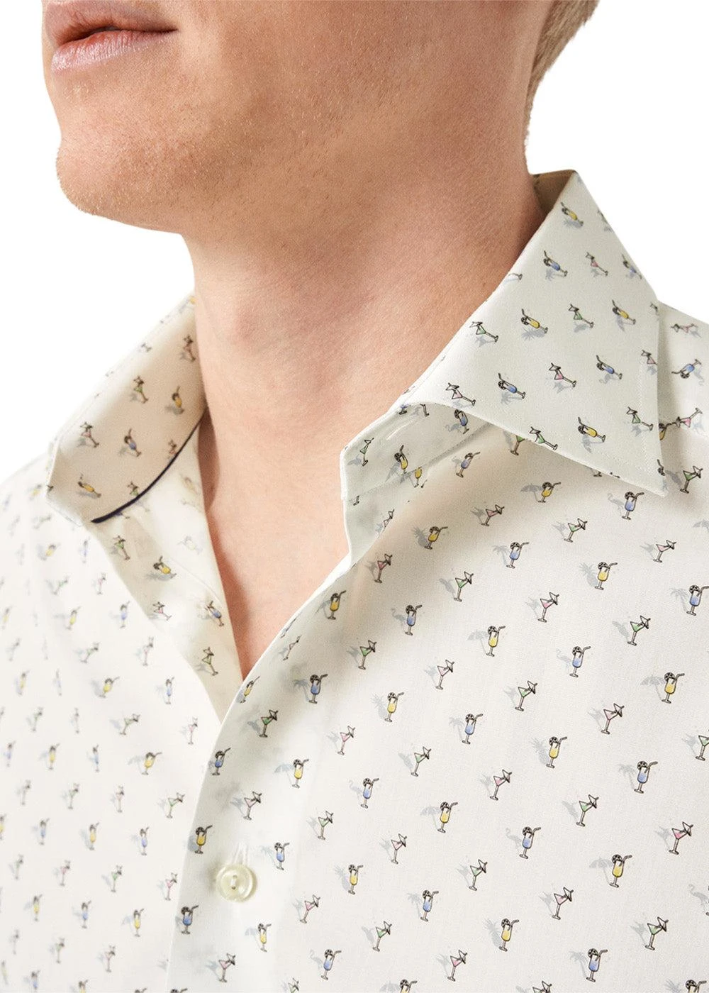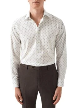 ETON Slim Drink Print Poplin Shirt – White