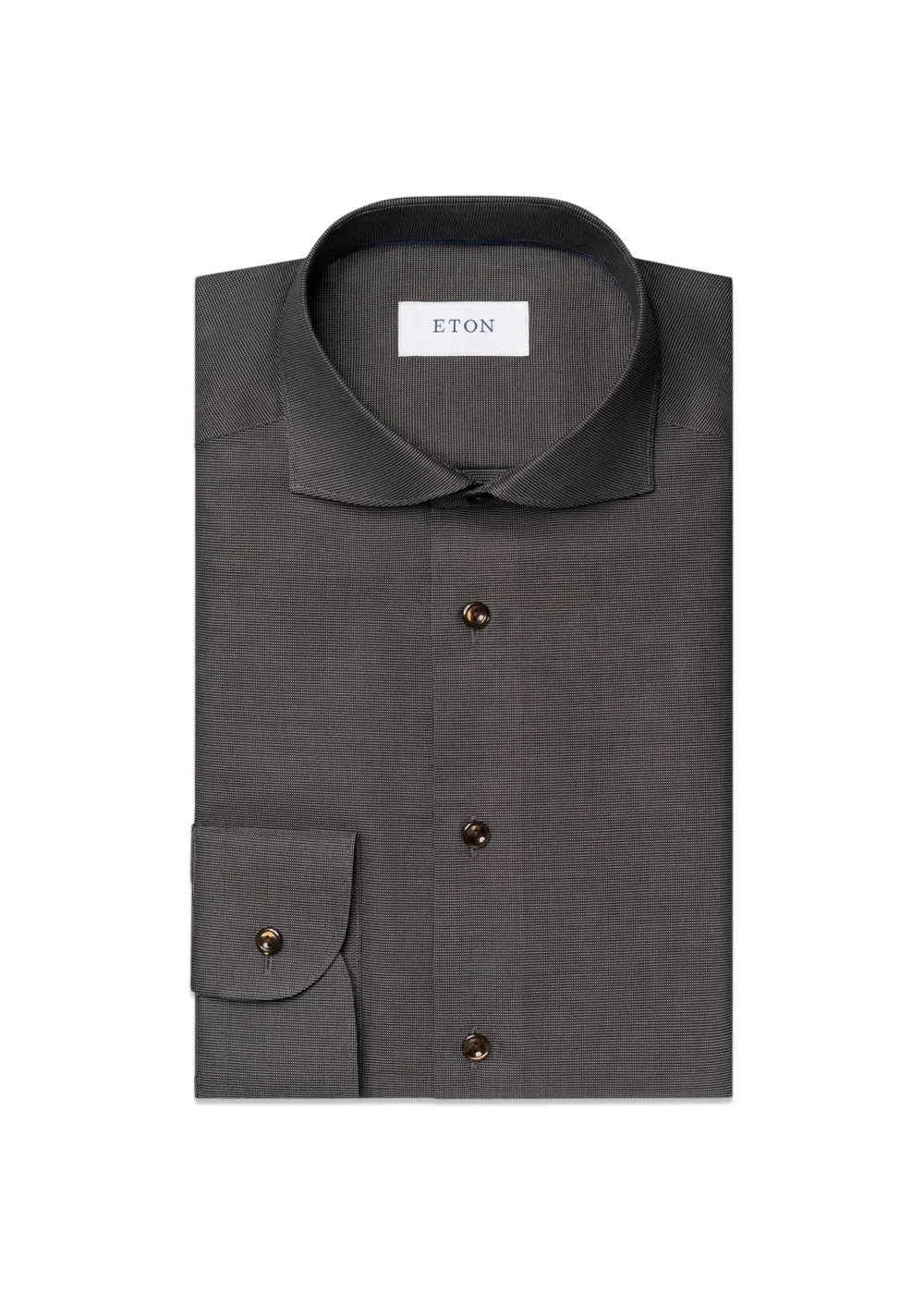 ETON Slim Semi Solid Signature Dobby Shirt – Brown