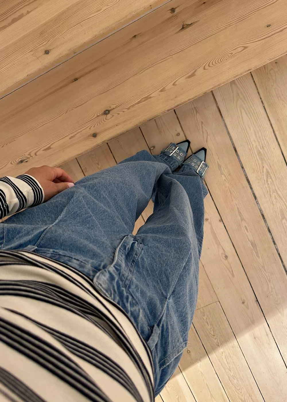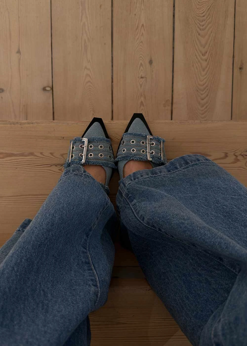 Ganni Feminine Buckle Ballerina Charms Denim – Faded Denim