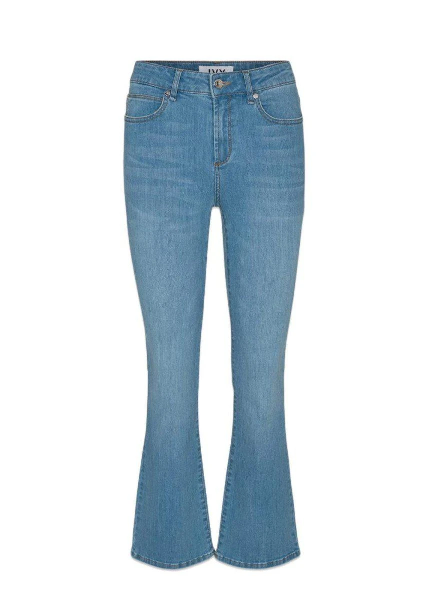 Jeans kommer i mange forskellige stilarter og farver. Enhver kvinde bør eje mindst et par velsiddende jeans, men jagten på det perfekte par jeans kan være lang. Når det perfekte par jeans først er fundet har du et essentielt item i din garderobe som du kan bruge til stort set alt og som kan redde enhver tøjkrise. Johanna kick flare wash bleach – Denim Blue fra Ivy Copenhagen kunne meget vel være dine nye uundværlige go to jeans.