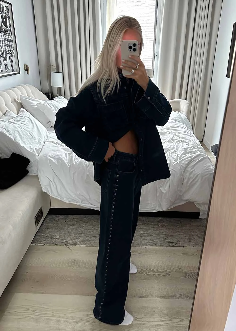 - Klassiske jeans med nitter langs siden
