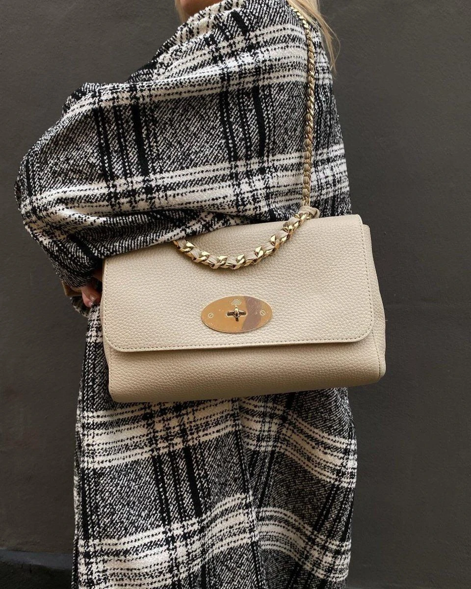 Medium Lily Top Handle Heavy G – Chalk fra Mulberry kan bruges både til hverdag og fest og kan indeholde de mest basale ting som mobiltelefon, pung, make-up og høretelefoner. Bær din håndtaske i hånden eller brug den korte hank som skulderrem. Bær tasken på armen, ligsom masser af fashionistaer i hele verden, som et stilfuldt item.