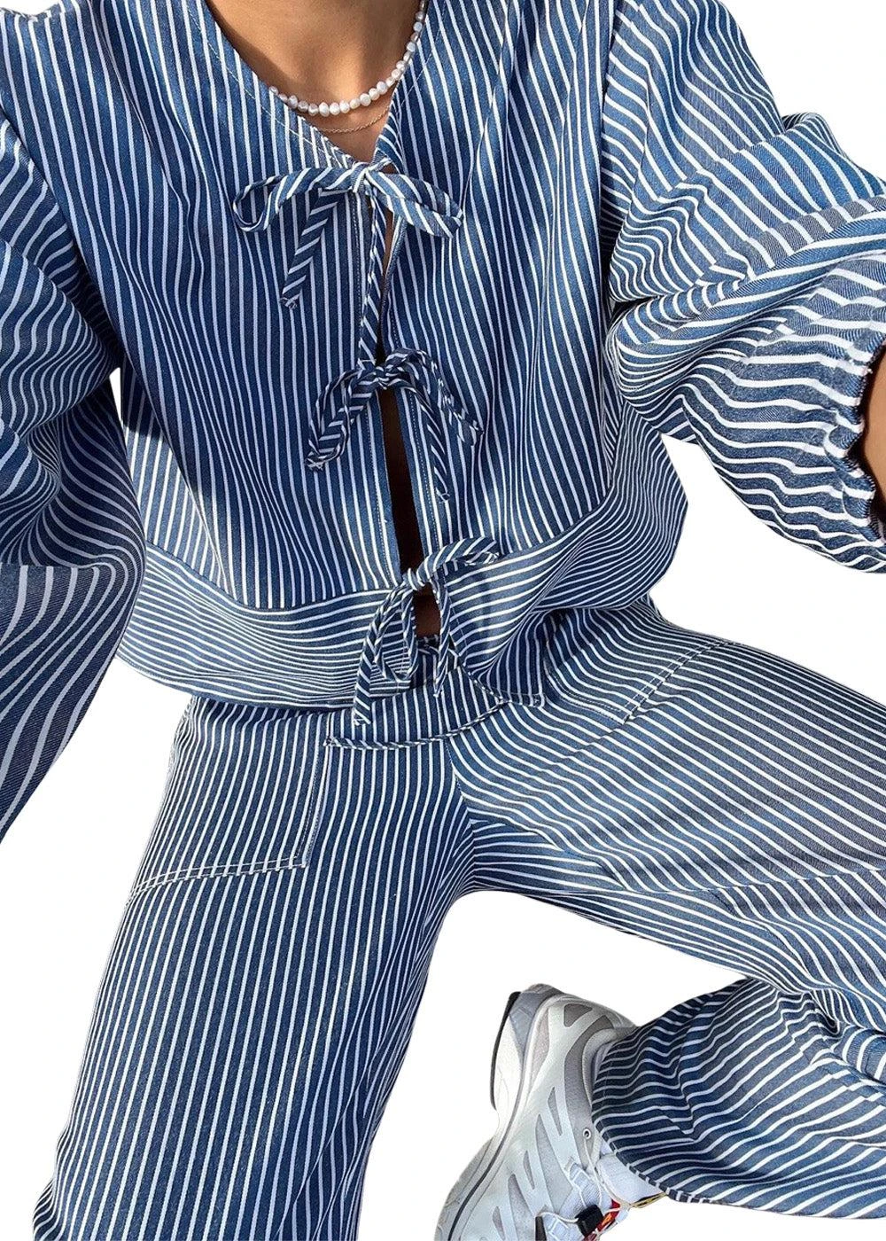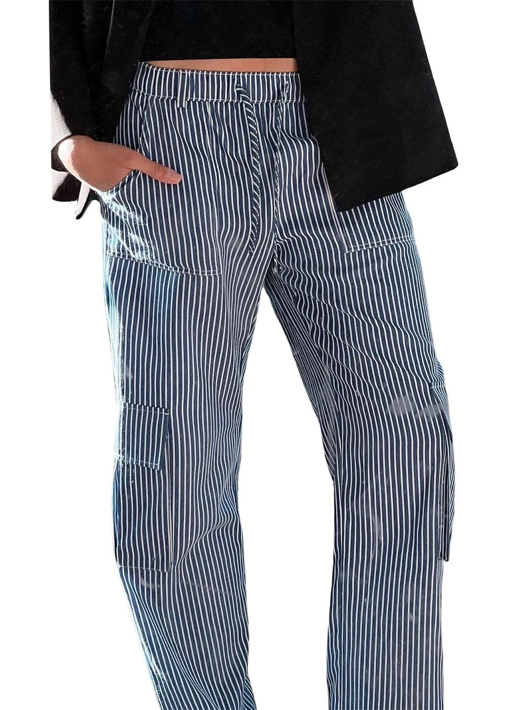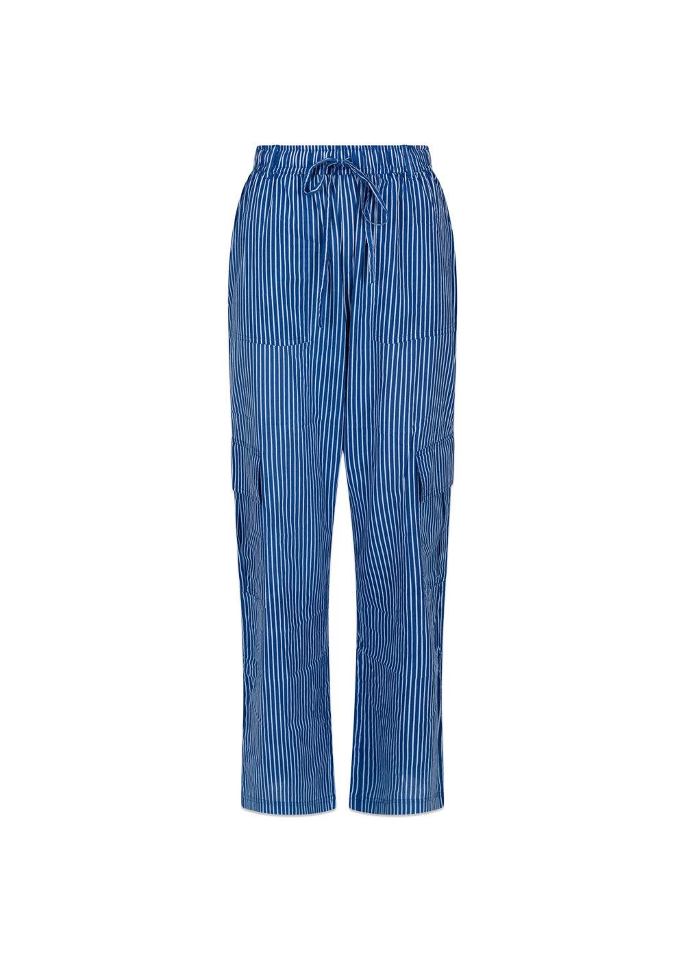 Kelly er et par bukser fra Neo Noir med løs pasform og snørelukning og elastik i livet. Buksen har et cargo-look med lomme-detaljer, lige ben og er stribet i blå toner.