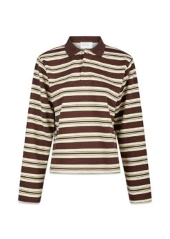 Neo Noir Mala Stripe Polo Blouse – Brown
