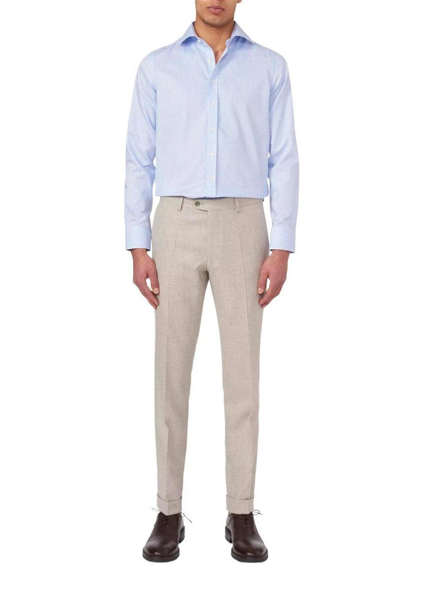Et par bukser er nødvendige og gerne i forskellige stilarter. Denz Turn Up – Sand Beige fra Oscar Jacobson er et par virkelig gode og seje bukser, som kan styles både til hverdag og pænt brug. Suitbukser eller et par sorte eller blå bukser er klassisk og kan bruges til det meste mens et par mønstrede bukser giver et cool og mere personligt look.