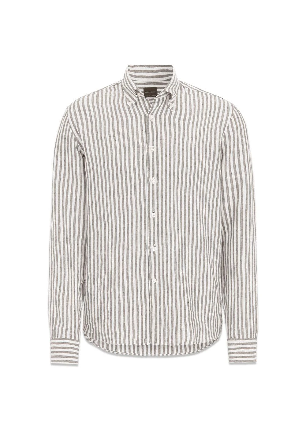 Oscar Jacobson Reg Fit BD Striped Linen Shirt – Basket Beige