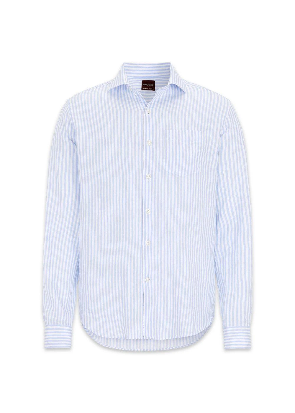 Oscar Jacobson Reg Fit Wide Spread Linen Venetian Stripe Shirt – Smog Blue