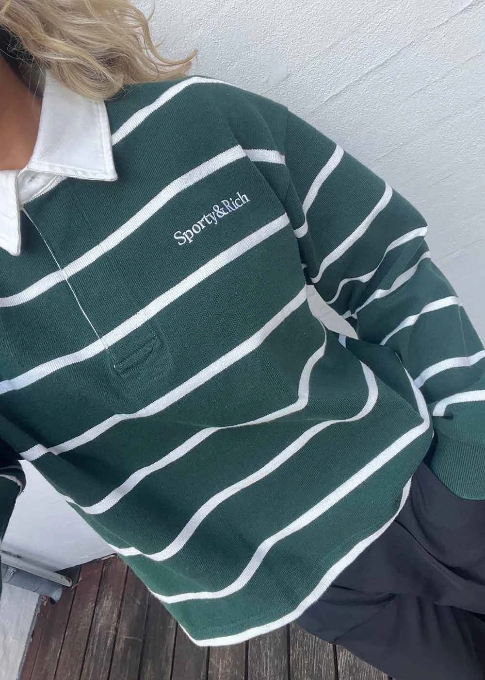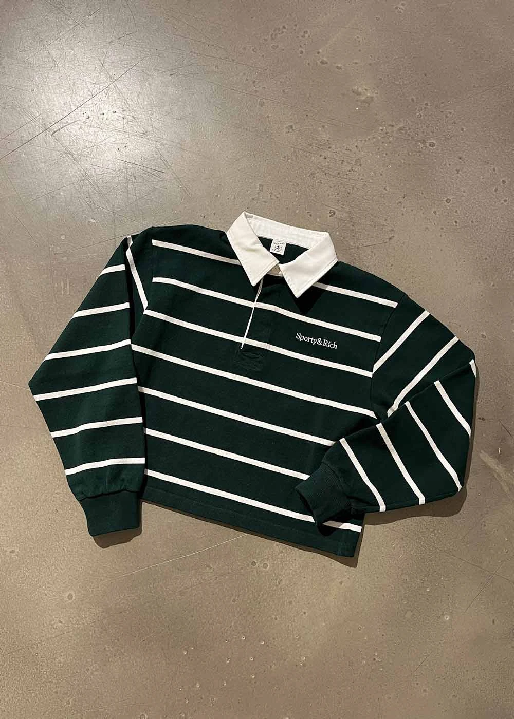 Serif Logo Cropped Rugby Polo – Forest/White