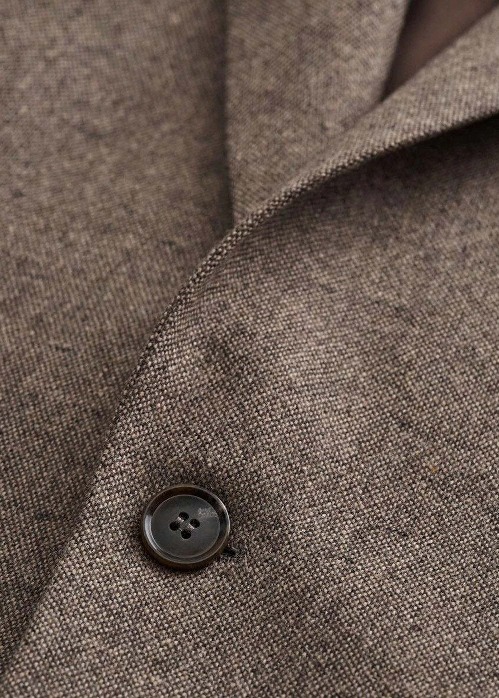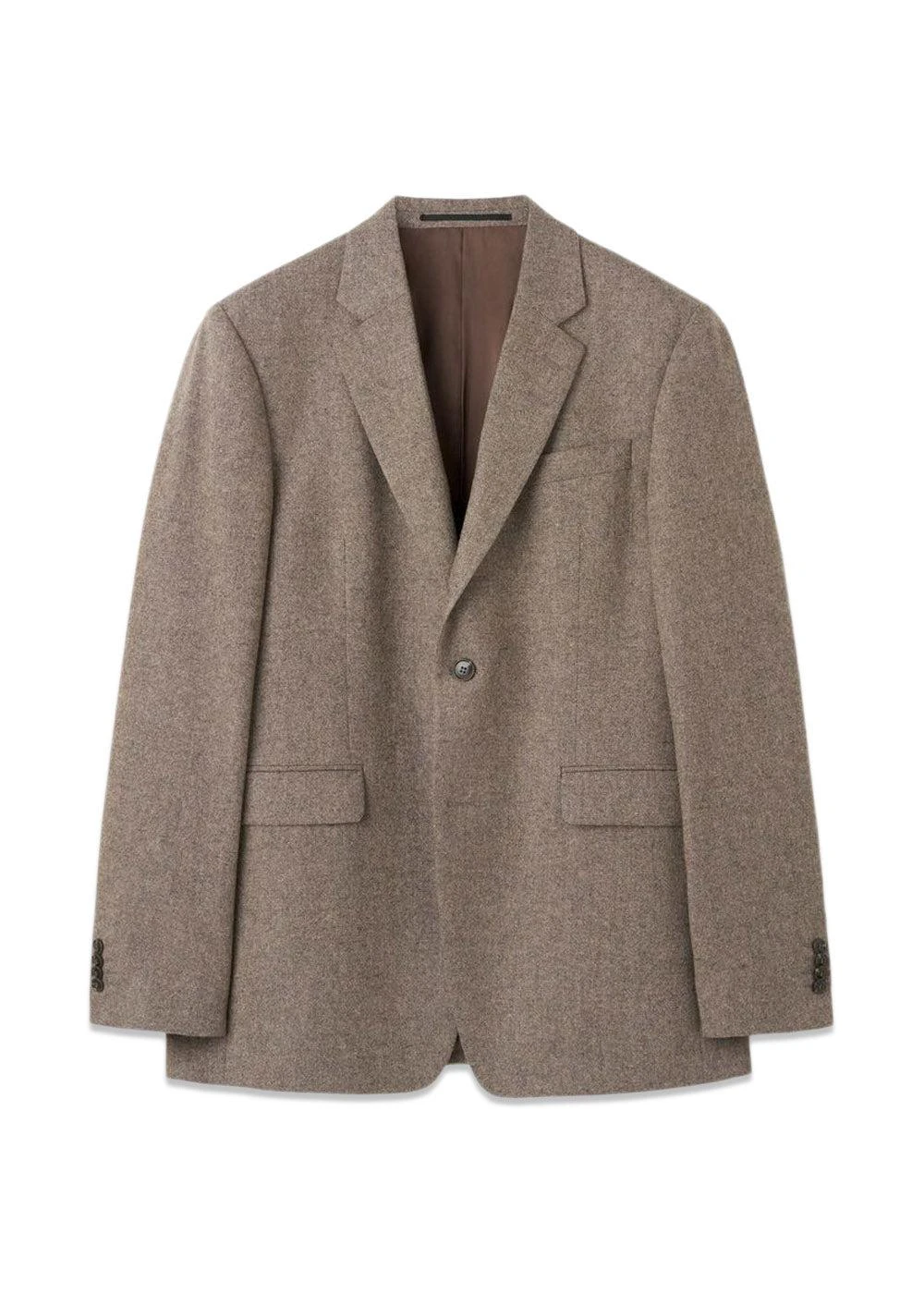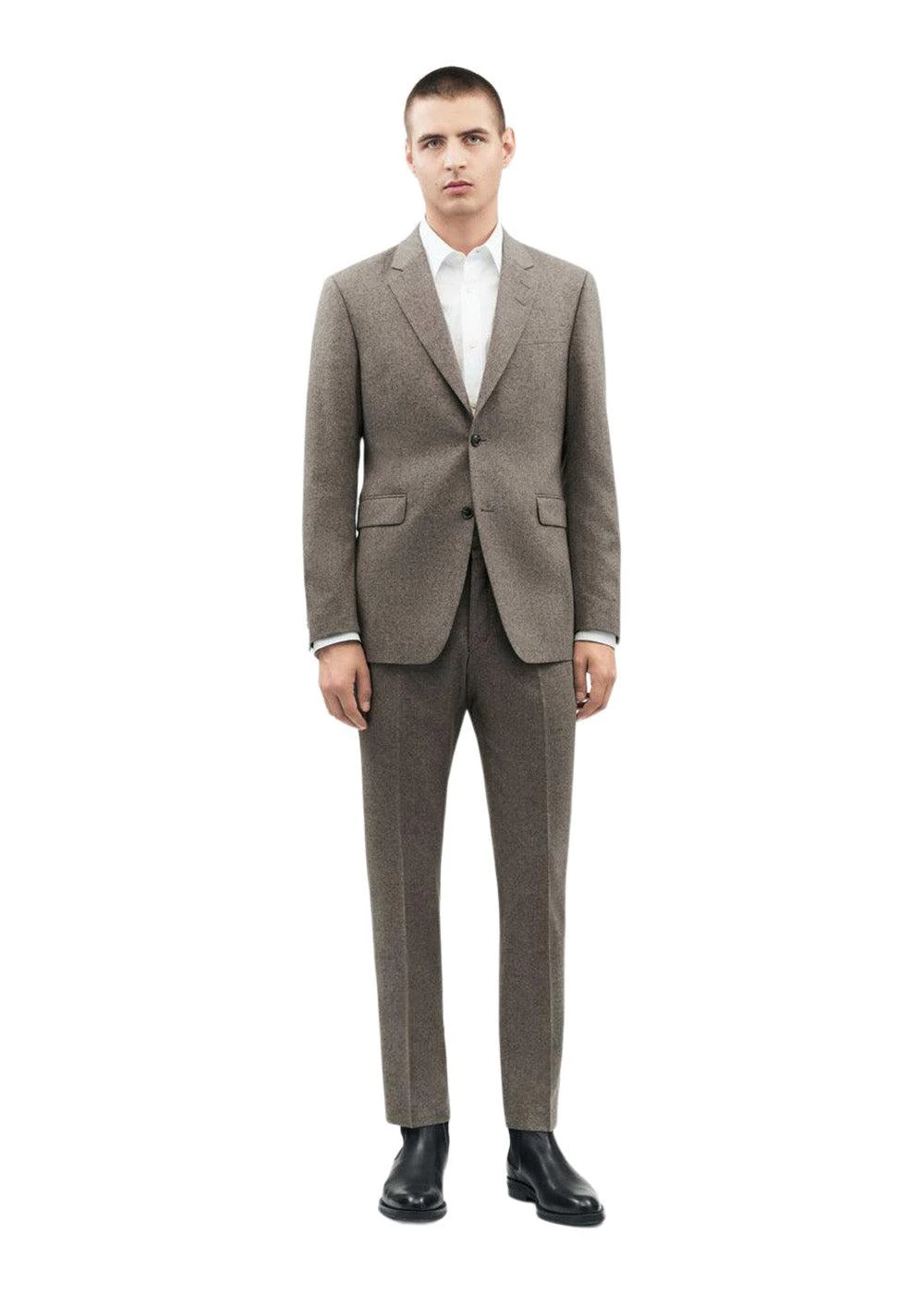 Justins er en blazer i børstet uldblanding med stretch og en tætsiddende pasform. Blazeren har revers, knapper ved ærmerne, dobbelt sideslids bagpå og er fuldt foret.