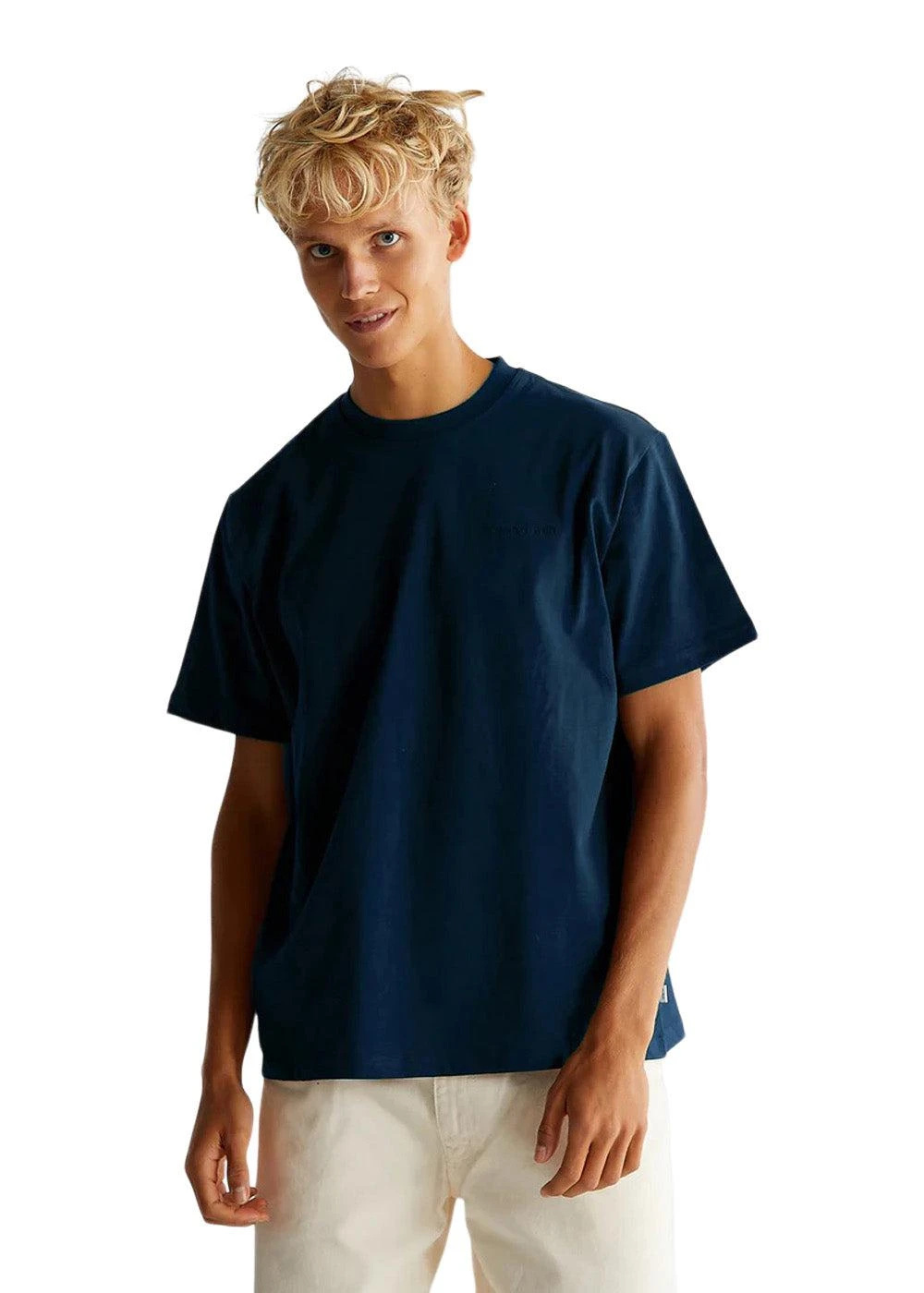 Baine Base Tee i navy har rund hals, korte ærmer og logo broderi foran. En t-shirt i boxy fit.