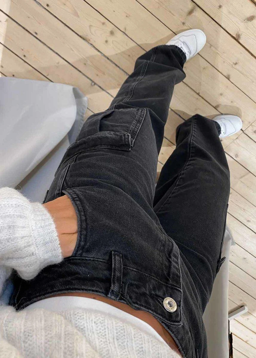 Jeans kommer i mange forskellige former og farver. Det helt rigtige par jeans kan redde enhver tøjkrise og er super anvendelige til alt fra bluser og t-shirts til en blazer eller til at have under en kjole. Når det perfekte par jeans først er fundet har du et uundværligt item i din garderobe som du kan bruge til stort set alt og som kan redde enhver tøjkrise. Lou Raven Cargo – Dark Grey fra Woodbird kunne meget vel være dine nye uundværlige go to jeans.